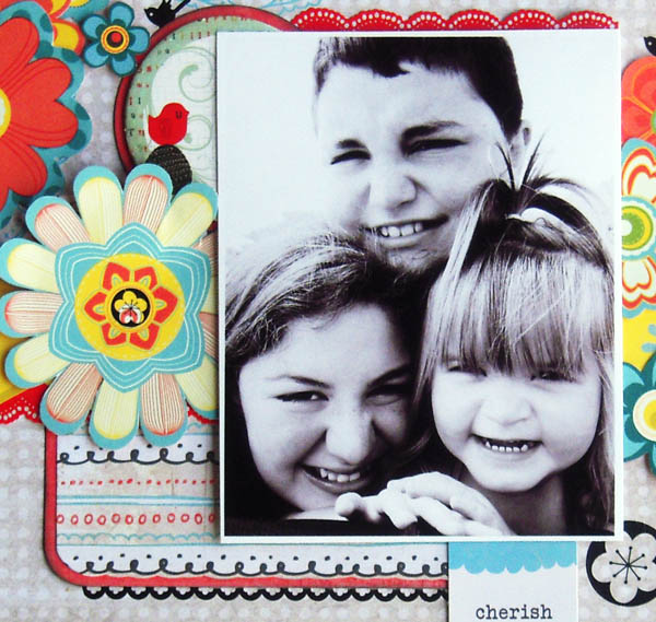 I used some more of Webster's Pages Everyday Poetry along with some bits and pieces of other collections, Ladies & Gents, Western Romance and Life's Portrait. I had recently purchased some K & Company and Recollections die cuts that I found at Michaels in the clearance section that I added for a little pop of color.