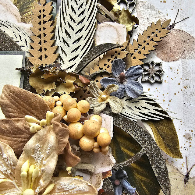Leaves from Leaves Set 1 were painted with DecoArt Americana Mississippi Mud Paint and stippled with Folk Art Matte Linen Paint. I added some flowers by Blue Fern Studios and Petaloo, along with some dried moss, some random stamping and butterfly rub-ons from 49 and Market Vintage Artristry Coral.Thanks for stopping by!
